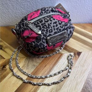 2/$40 Betsey Johnston Pink and Gray Leopard Print Crossbody Bag EUC