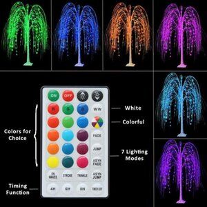 About this itemProduct detailsProduct Description Colorful Design Designed with RGB LED lights, 16 colors and 8 flashing modes makes various different of lights for you. Get 1 tree to fit many home and party decorations. Christmas and Halloween Tree Light An exquisite light decor to your home, living room, fireplace, and children's room. Light up for your Christmas, Valentines, Easter, Birthday, Wedding, Party, and other important events in life. DIY Branches Naturally drooping branches with LED light can be adjusted for your shape. Numerous wicker swings gently, increase the sense of agility for your home. 6ft LED Willow Tree This 6 ft tall willow tree is suitable for outdoor decoration. IP44 waterproof, perfect for daily or festival garden, patio, porch decoration. Powered by Adapter, pls keep the adapter dry when used outdoor. Newest Remote Control 16 colors and 8 flashing modes for choice, like FADE, JUMP, TWINKLE, STROBE etc. Remote with timer function for controlling the tree light 5ft LED Willow Tree 5 ft LED willow tree with 240 colorful lights, can be a wonderful decoration for your home, garden, patio, porch, Thanksgiving, Christmas, parties, wedding, birthday, etc. . RGB willow tree RGB willow tree LED birch tree LED birch tree LED RGB birch tree Warm White Willow Tree Height 5FT 6FT 6FT 7FT 6FT 6FT Color RGB RGB Warm White Warm White RGB Warm White