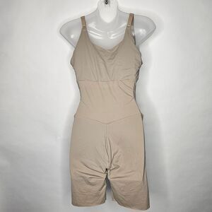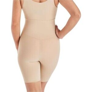 Maidenform nude Wear Your Own Bra Body Shaper. Curve-hugging snatched compression shapewear is designed to deliver a firm control flattering fit from tummy to hip to thigh. Mid-thigh shorts. Open-bust design with v-neckline and unlined, wireless bust. Adjustable shoulder straps. Tank like back. Anti-static and cling-free material. Split cotton gusset crouch opening.