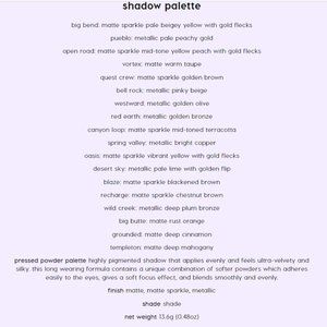 The sold out ColourPop Sandstone Eyeshadow Palette is an 18-pan palette that captures the warm and earthy tones of the Southwest. With a perfect balance of matte and metallic finishes, create looks perfect for any season. Pressed powder palettes are highly pigmented shadows that apply evenly and feel ultra-velvety and silky. This long wearing formula contains a unique combination of softer powders which adheres easily to the eyes, gives a soft focus effect, and blends smoothly and evenly.