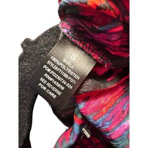 Dress Forum's Boho multi-color pattern long sleeve cropped blouse in size S offers a vibrant style. The plunging neckline makes it a standout piece, ideal for business casual occasions. Its colors include black, pink, red, and purple.