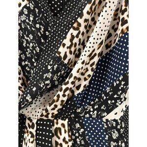 This stylish New Cabi tank in size 16 features adjustable straps and a drawn-in waist. It's multi-patterned in blue, black, and white for a trendy, versatile look.
