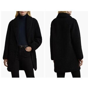 $240 New Lauren Ralph Lauren Shawl Collar Faux Shearling Coat in Black XL
