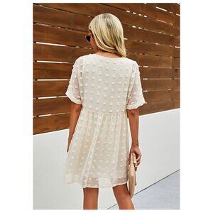 ✌️ 2/$40 ✌️ New Short Sleeve Cream Mini Dress, V Neck, Swiss Dot Flowy Dress