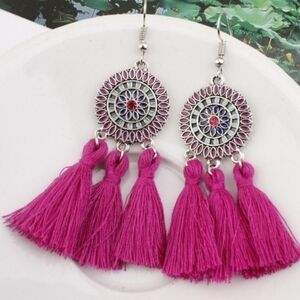2/$40NEW Fuschia Western Tribal Tassel Preppy Clueless Dangling Earrings(#1,046)