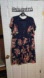 Elegant navy dress with pink floral pattern. Features short sleeves and a flattering fit. Perfect for any occasion.