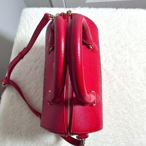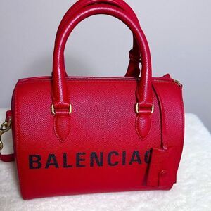 $2420 BALENCIAGA Ville Small Red Bowling 2 way Bag Yellow Interior