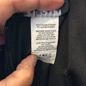 Fabric is 97% polyester 3% spandex believe it or not. This is machine washable, line dry.