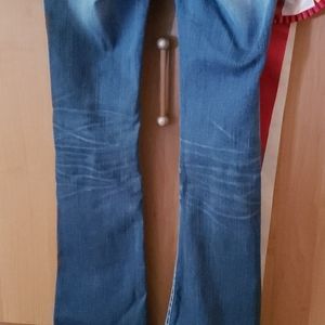Tags off but can't remember ever wearing them. Too short for my taste 24×32 boot cut jeans. Love them, and bought after I caught my previous pair on a nail (have those listed as well). These are in perfect condition from waist to bottom hem. Whiskering detail on the back of the knees and have similar stitch piping on the front pockets that are on the back ones :). They've been sitting in my wardrobe for about 2 years. I just never wear them and its time for someone else to enjoy them :).