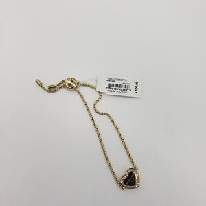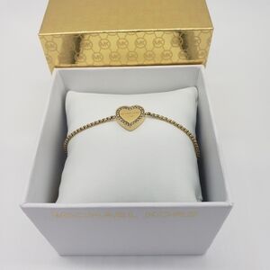 244- MICHAEL KORS Heritage Pave Logo Heart Slide Bracelet Gold Plated NWT
