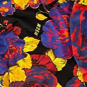 $245 MSGM Tie Neck Pussybow Blouse stretch floral long sleeve 38 Small