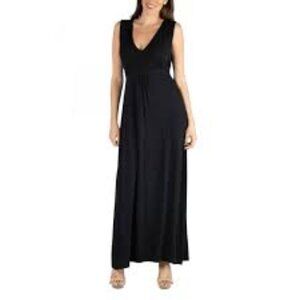 24/7 Comfort Apparel Women's V Neck Sleeveless Maxi Dress with Belt New