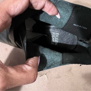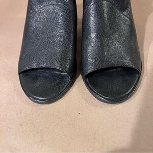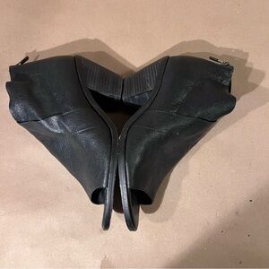 $247 Eileen Fisher Ankle Boots Black Pebbled Leather Peep Toe Women’s US 8.5