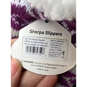 These Sherpa slippers by 24/7 Life are designed for cozy comfort. With a soft interior and an appealing pattern, they offer warmth and style. Ideal for indoor use, they provide a snug fit for lounging at home during the colder months.