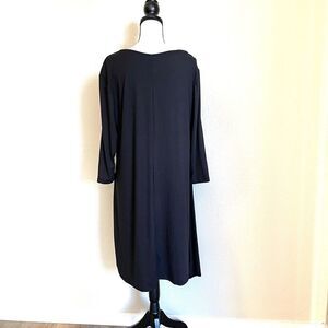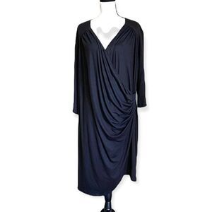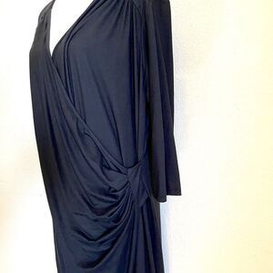 For a professional casual look or an evening out, slip into thisstunning wrap dress from 24/7 Comfort Apparel. With a faux wrappeddesign and breathable 3/4-length sleeves, this dress is perfect forany event during the year on any figure. • Color options: Black • Style: Day to dinner • 3/4-length elbow sleeves • V-neck •Unlined • Pull-over•The approximate length from the top center back to the hem is 40”, pit to pit 27” across, waist 23” across• 92% polyester, 8% spandex • Machine washable