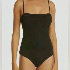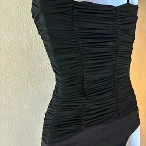 $248 Goldsign Women's Black The Ezra Shirred Bodysuit Size X-Small