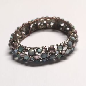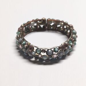 Vintage Silver Blue and Pink Faceted Beaded Bangle Bracelet