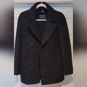 $249 Women's Navy Blue Tommy Hilfiger Size Small Textured Virgin Wool Blend Coat