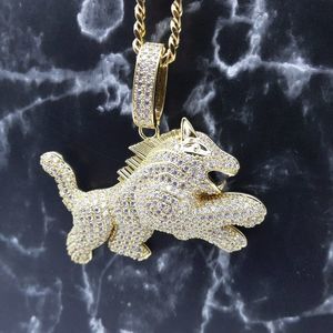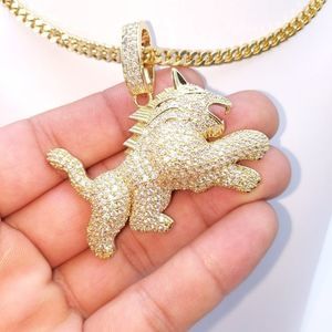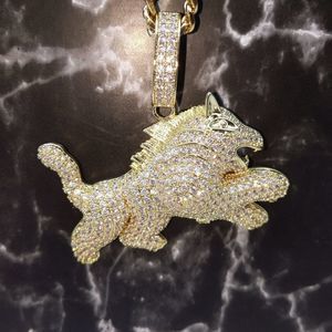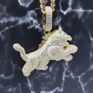 New Fully Iced Lion Pendant + 24" x 5mm 14K Gold Finish Cuban Chain over Stainless Steel for Men & Woman.