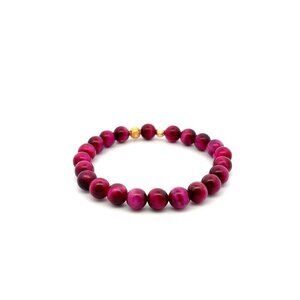 24K 18K Gold Money Coin Ball Bracelet Gemstones Dyed Tiger's Eye 8mm S6.5"