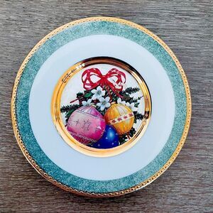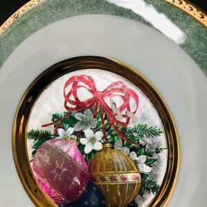 Dufex Art small Christmas ornaments metallic vintage collector’s plate with 24K gold foil trim. Great preowned / like new condition, no chips cracks or flaws.
