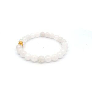 24K Gold Money Bag Lucky Charm Bracelet Gemstone Natural White Jade 8mm Size 7"