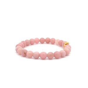 24K Gold Money Bag Lucky Charm Stretchable Bracelet Gemstones Natural Pink Opal