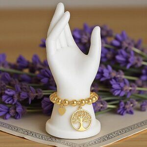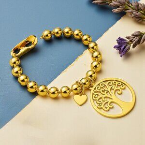 Add a touch of elegance and meaning to your jewelry collection with this 24K gold plated 304 stainless steel chunky beaded bracelet! Featuring a beautifully detailed Tree of Life charm (1.15") and a dainty heart accent, this bracelet symbolizes strength, growth, and love. The 7" length and 0.3" beads offer a bold yet comfortable fit, making it perfect for everyday wear or special occasions. πβ¨