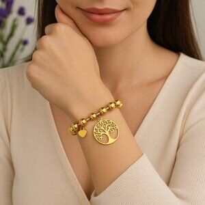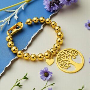 24K gold plated bracelet, chunky bead bracelet, Tree of Life jewelry, stainless steel bracelet, gold beaded bracelet, trendy gold bracelet, boho chic bracelet, spiritual jewelry, meaningful jewelry, statement bracelet, adjustable bracelet, heart charm bracelet, elegant gold bracelet, stackable bracelet, tarnish-resistant bracelet, gold jewelry for women, luxury bracelet, gold charm bracelet, fall fashion accessories, winter jewelry trends, holiday gift ideas, Christmas gift for her, birthday gift for women, best friend gift, trendy bracelet 2025