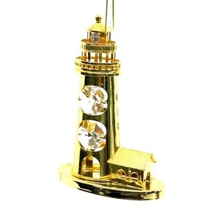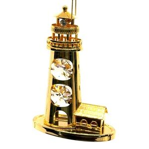 24K Gold Plated Lighthouse with Austrian Faceted Crystals Ornament by KG & C Inc