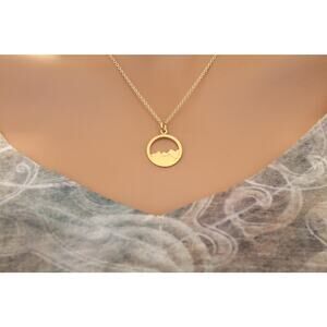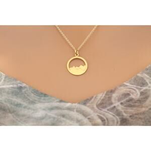 This is a Gold Charm - Openwork Mountains with 24K Gold Plated Necklace. All necklace chains are 14/20 Gold Filled Chains. The charm is 24K Gold Plated Sterling Silver with a fine layer of nickel in between. This charm comes on an 18 inch chain.