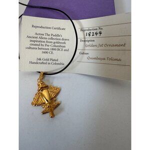 24K Gold Plated Quimbaya Tolima Pendant Necklace On Black Cord