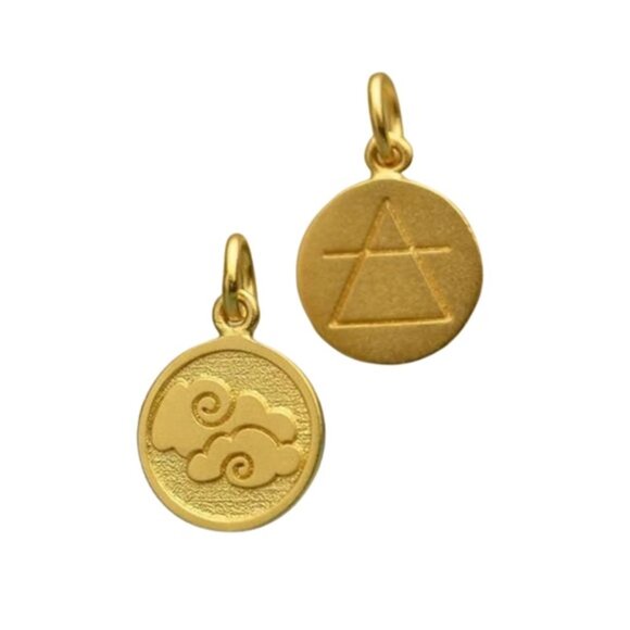 This reversible charm captures the essence of air with a swirling cloud design on one side and the alchemical air symbol on the other. Crafted from sterling silver with a 24K gold plated finish.