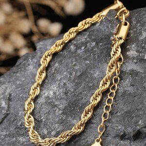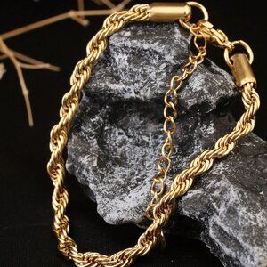 24K Gold Plated Twisted Bracelet, Titanium Steel Hypoallergenic