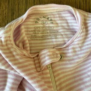 3 one piece footed pajamas with front zipper. Brands include Burt’s Bees, Primary, and Carters. EUC.