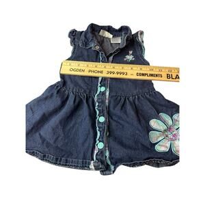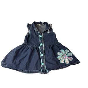 24M Months Vintage Carter's Baby Denim Jean Dress Jumper Embroidered Flowers