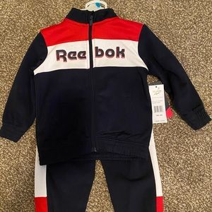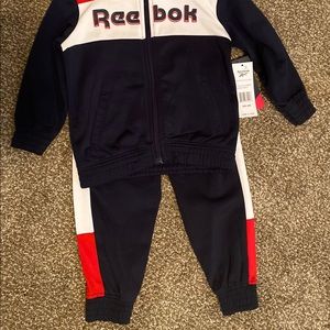 Size 24 month (same as a 2T). Reebok track suit. Navy, white, and red.