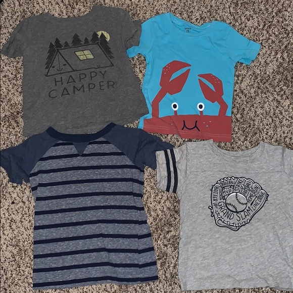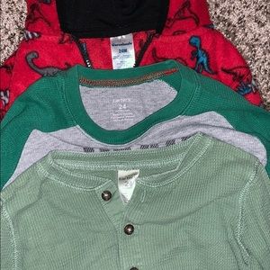 2 long sleeve (Carter’s). 1 zip up jacket (Garanimals). 4 short sleeve shirts (Carter’s, Jumping Beans).