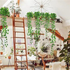 🧿🍀SIZE:Our ivy garland made from Silk,Plastic,High Quality,Each garland plants 7 FT Long,total 84 Ft,Leaves about 1.5-1.8 inches in diameter,comes with 24x artificial ivy vine.Each ivy vine garland holds 80 leaves.
