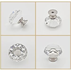 24Pcs 1.2" Small Diamond Glass Cabinet Knobs Brushed Nickel Kitchen Drawer Pulls