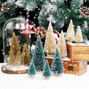 24Pcs Mini Christmas Trees Bottle Brush Trees with Wood Base, Christmas Village