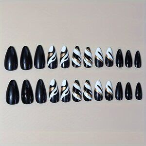 24-Piece Almond-Shaped Press-On Nails Set - Medium Length with Black and White