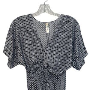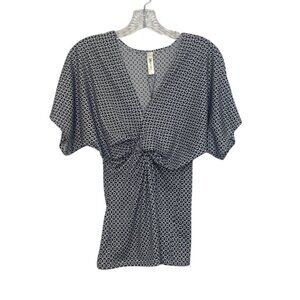 24Seven Geometric Print Top Shirt Womens Medium Black White New