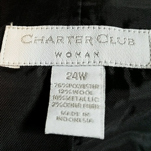 Black and silver (maybe a bit pewter-ish as it isn't a shiny silver). Two buttons. Partially lined, finished seams. Dress form is 50"/ 41" / 52". Bundle to save 20%.