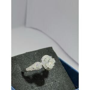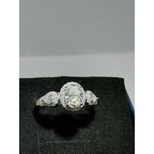 Stunning 2.4ctw VVS oval-cut moissanite halo ring crafted in 925 sterling silver. Features an elegant oval center stone with brilliant faceted sparkle, accented by round side stones and a detailed pavé band. Brand new, size 8. Retail $400 — delivers premium diamond-level brilliance at a fraction of the price.