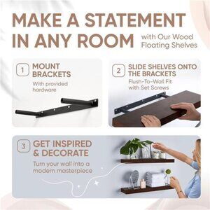 🧿AUTHENTIC WOOD GRAIN - Enjoy the timeless elegance of real wood. Handcrafted from the finest 1.75" Thick natural pine wood measuring 24" Wide x 6.5" Deep x 1.75". Our shelves highlight the inherent charm and durability of high-quality wood. Each Shelf reveals its unique character of knots and natural wood grain; each ledge is a little different but equally stunning.