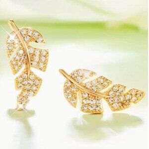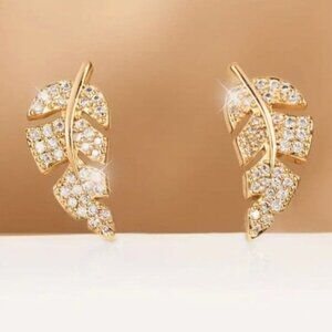 24k Gold Plated Diamond Leaf Earrings