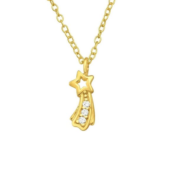 Capture the beauty of the night sky with our exquisite 24k Gold Vermeil Dainty Shooting Star Necklace. Crafted with meticulous attention to detail, this necklace features a delicate shooting star pendant suspended from a sleek cable chain. Made from high-quality sterling silver and 24k gold, it exudes elegance and durability.