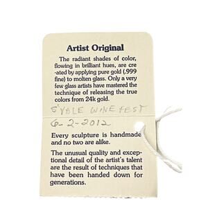 • The radiant shade of color, flowing in brilliant hues are created by applying pur gold (.999 fine) to molton glass. Only a few artists have mastered the technique of releasing the true colors from 24k gold!