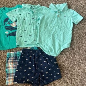 One shirt has a spot that should come out in the wash. White onesie has some spots but works well layered or under overalls.